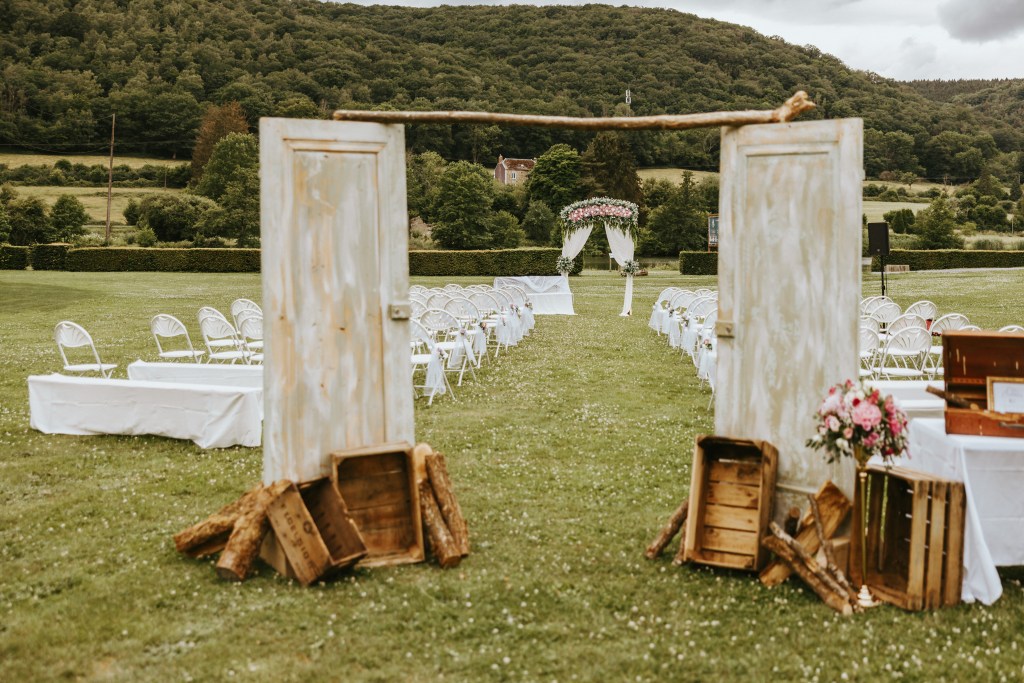 Zo was een belangrijk aspect voor ons concept het transport. Onze trouwlocatie lag niet bij de deur, wat maakte dat we niet oneindig veel tripjes heen en terug naar de locatie konden maken. Met deze problematiek in gedachten, hebben wij een houten boog ontworpen die volledig afbreekbaar is in kleinere stukken en die in elke personenwagen past.